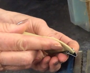 Step 3 – You can attach the clips with a vice. To do this, place the flat side of the clip towards the outside of the vice (towards the handle) and place the webbing in the bottom of the clip.