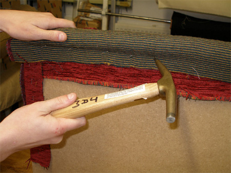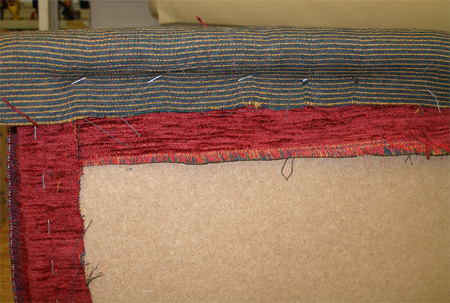 4. Pull the fabric down, revealing its correct side – the result is a near invisible join. The bottom can be tacked or stapled to the underside, and the sides turned in/under and slip stitched.