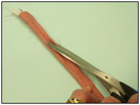 Next cut away the excess fabric from the overlap on the back of the piping so that when you turn it over it cannot be seen from the front.